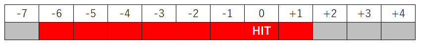 のヒットフレームの2F前~1F後の4F間に