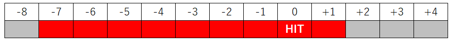 ヒットフレームの7F前~1F後までの9F間、受け付けています。